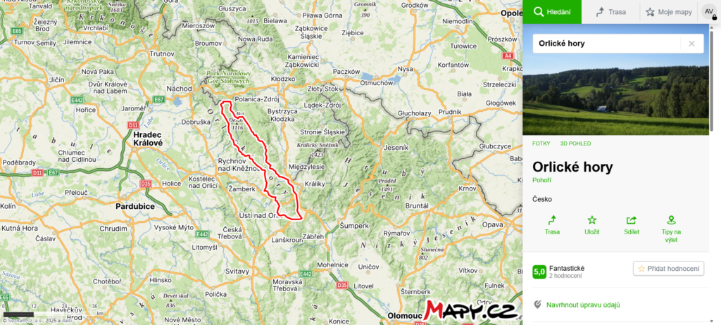 - Popis: Malebná trasa vedoucí krásnou krajinou podél Divoké Orlice.
