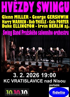 Hvězdy swingu. Vivat Glenn Miller! se uskuteční dne 2026-02-03 v 19:00 v Liberec, Kulturní centrum VRATISLAVICE 101010.🎟️ Koupit