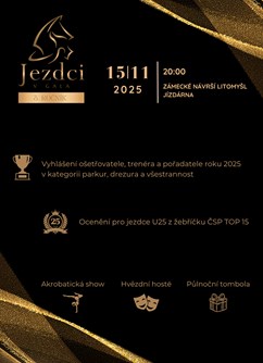 Jezdci v GALA - 3. ročník se uskuteční dne 2025-11-15 v 20:00 v Litomyšl, Jízdárna.🎟️ Koupit vstupenkuJezdci v