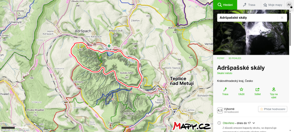- Trasa: Adršpašské skály – Vlčí rokle – Teplické skály