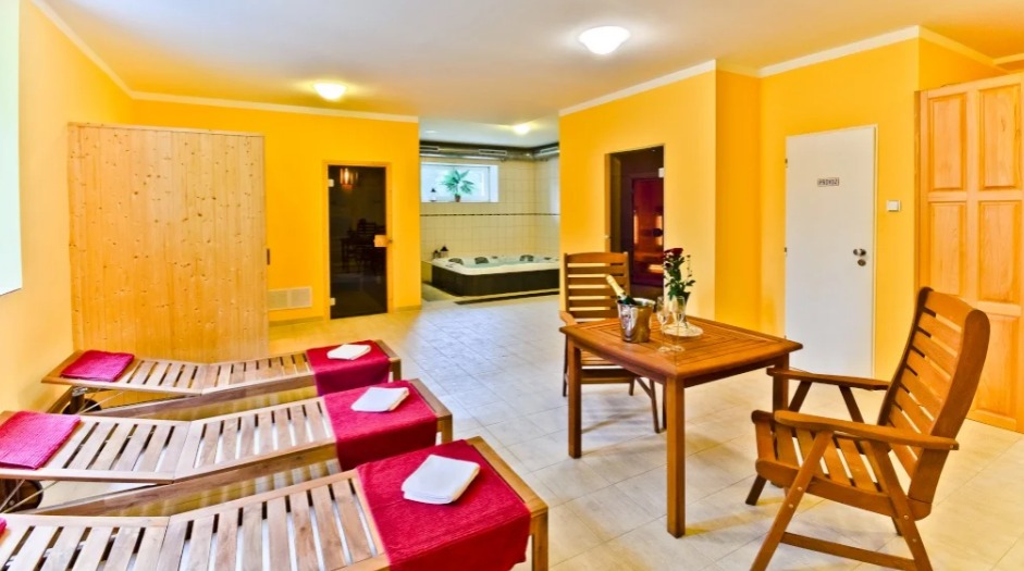 - Wellness: bazén, vířivka, saunový svět, masáž při pobytu 4+ nocí