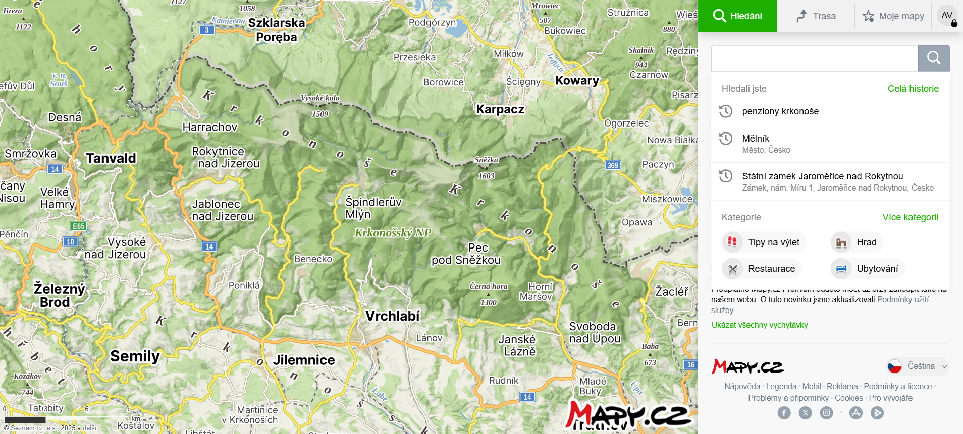 Gastronomie a výhled na Sněžku