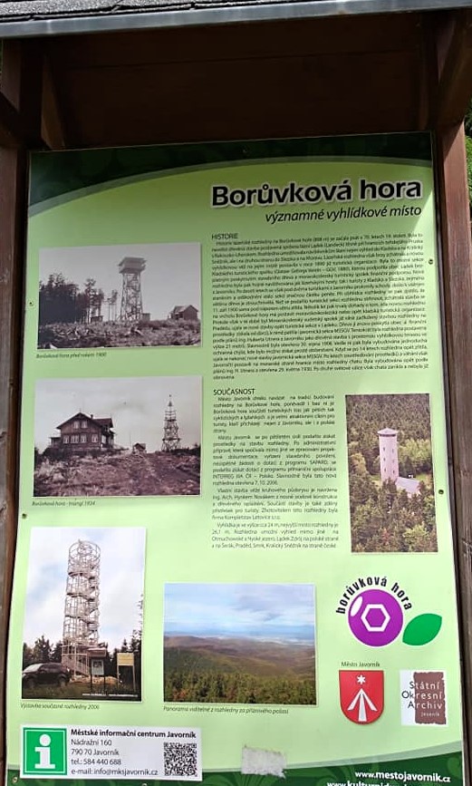 Vyhlídkové stavby na Borůvkové hoře mají dlouhou tradici. Už v 70. letech 19. století zde stála první rozhledna. Díky své exponované poloze na hranici a drsným horským podmínkám však jednotlivé stavby postupně podléhaly větru, sněhu a počasí.