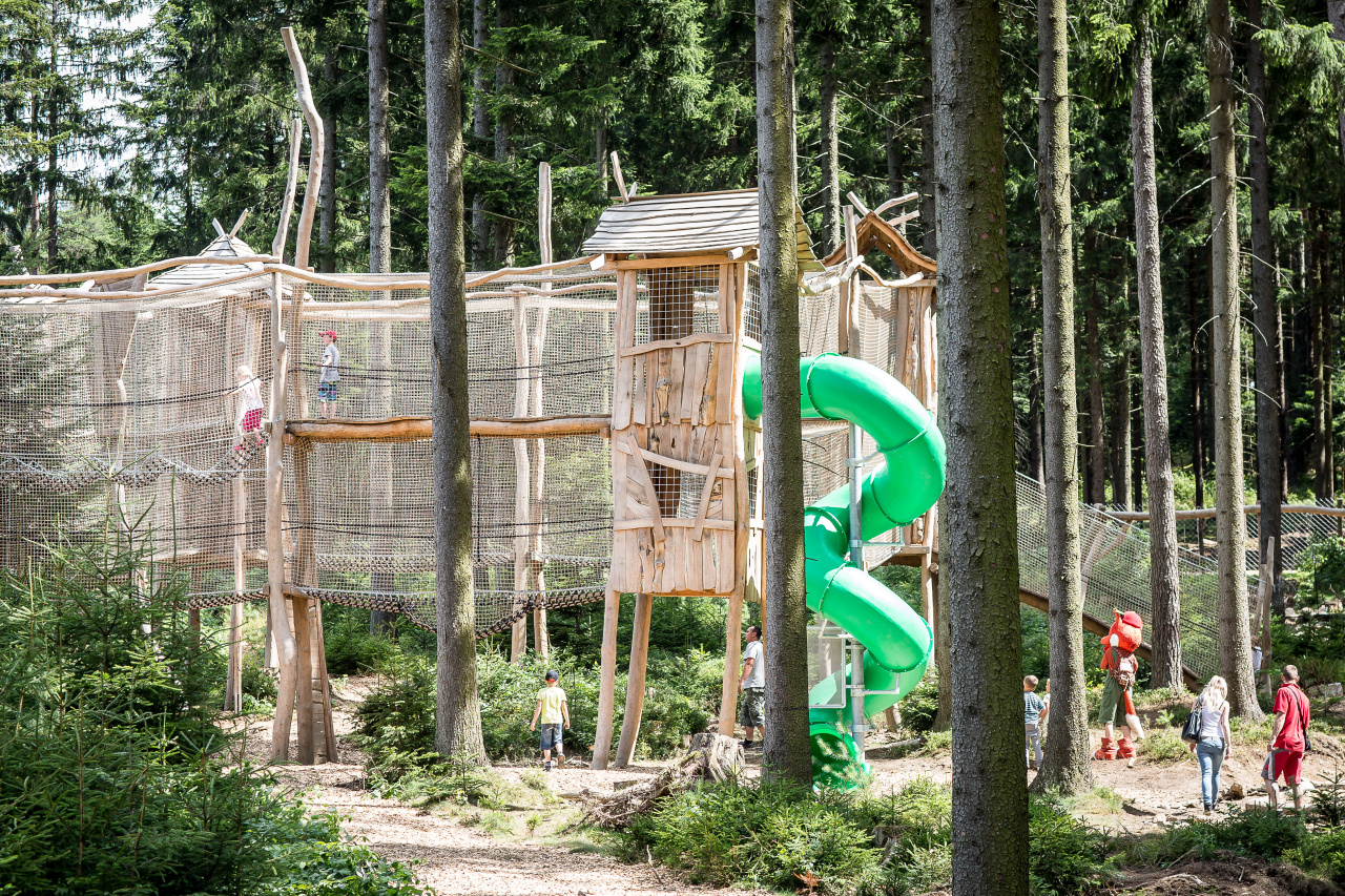 Všechny herní prvky v Království lesa jsou certifikované, bezpečné a pravidelně kontrolované. Jednotlivé sestavy jsou promyšleně navrženy tak, aby spojovaly zábavu s poznáním šumavské přírody v celé její rozmanitosti.