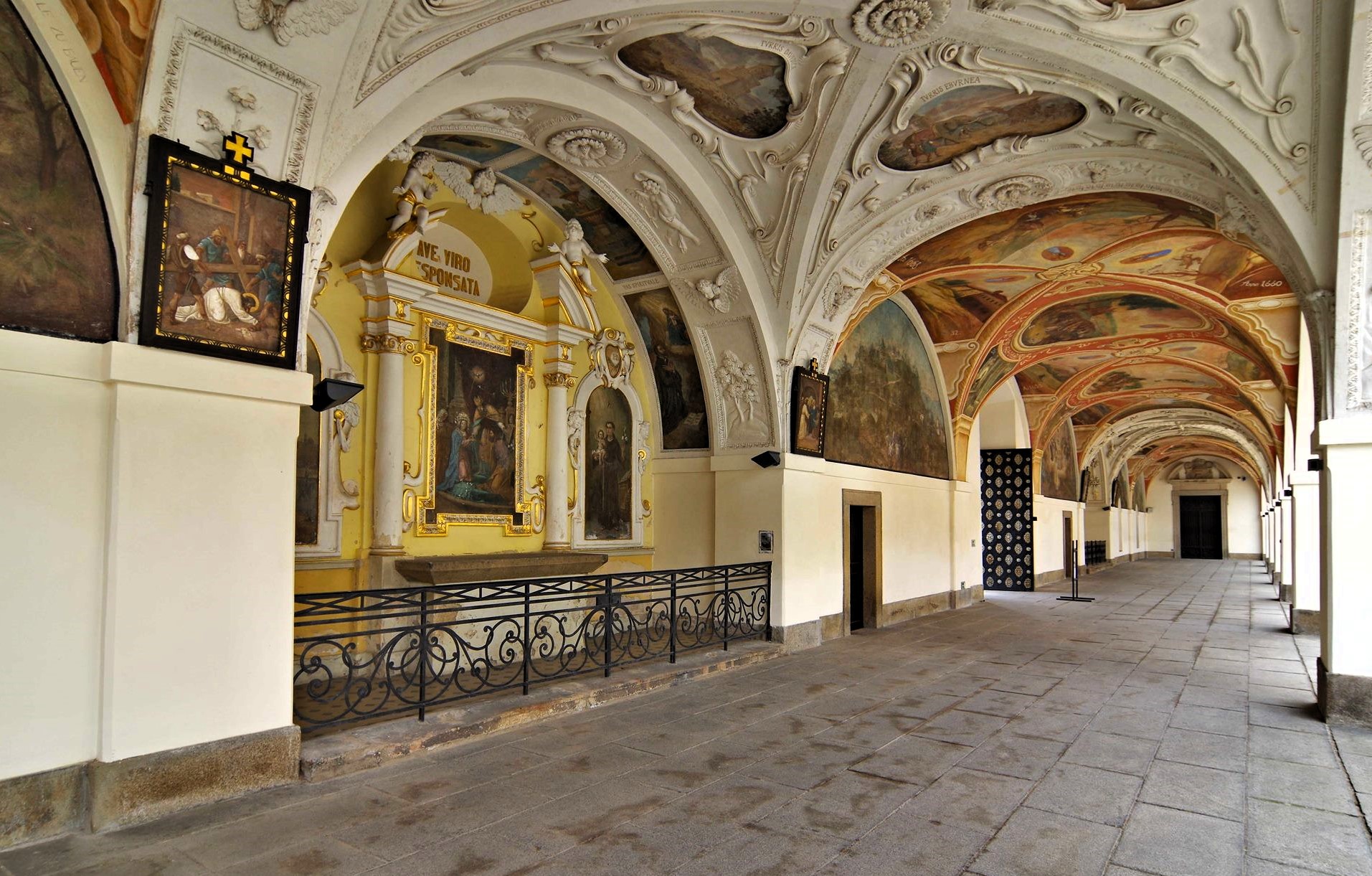 Výjimečné jsou především ambity s lunetovými obrazy, které vyprávějí příběhy spojené se Svatou Horou, i vstupní portály, považované za jedny z nejlepších barokních realizací v Čechách.
