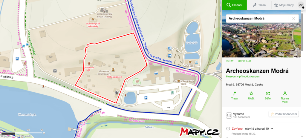 Archeoskanzen Modrá se nachází 7 km od Uherského Hradiště v podhůří Chřibů(Zlínský kraj), na okraji obce Modrá v dohledu od velehradské baziliky. Jedná se o rekonstrukci velkomoravského sídliště středního Pomoraví z 9. stol., rozděleného na mocenskou, církevní a hospodářskou část, které se nachází v místech autentických archeologických nálezů.