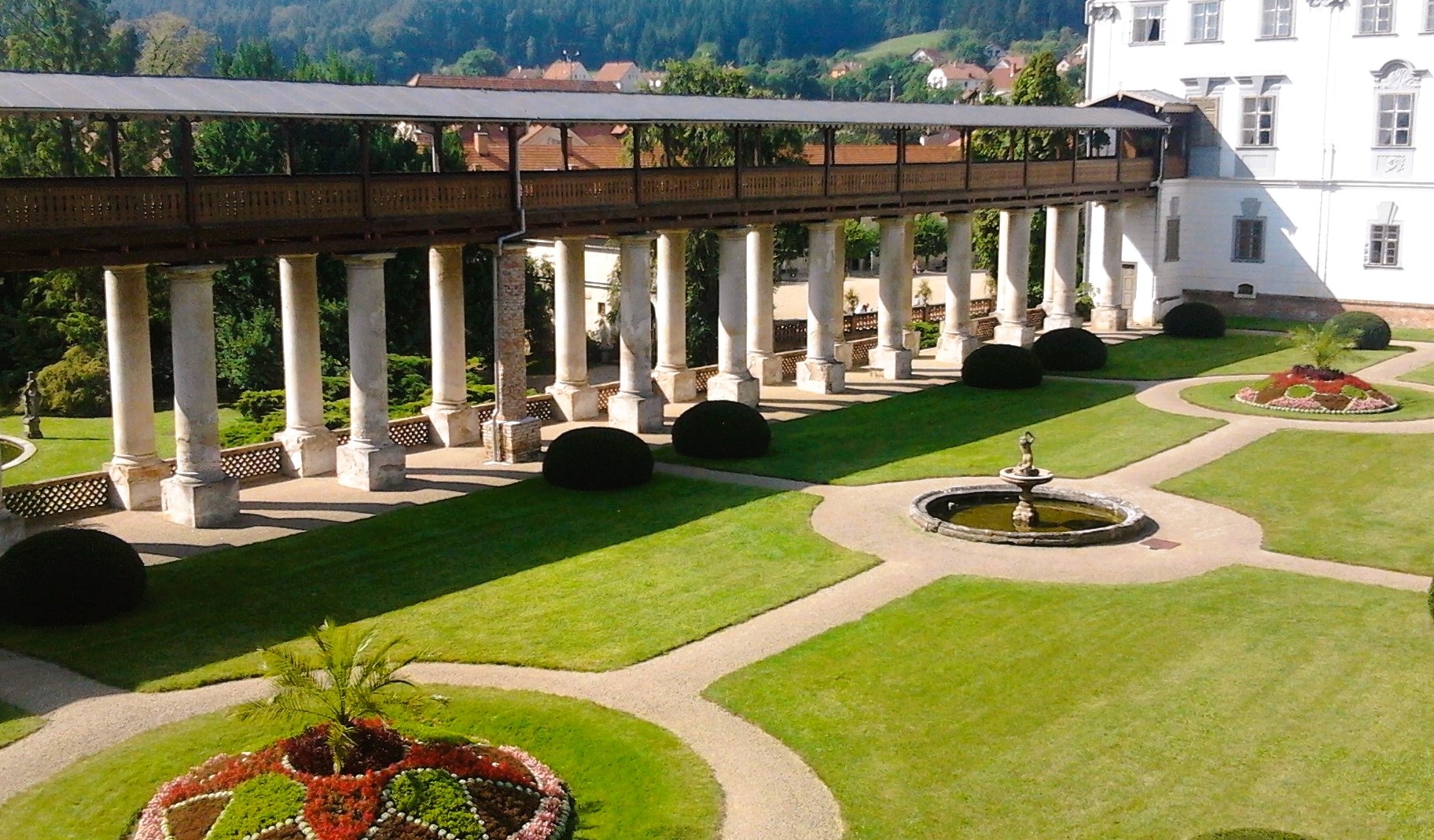 - Promenádní kolonáda – krytá chodba, odkud se otevírá nádherný výhled do zahrady.